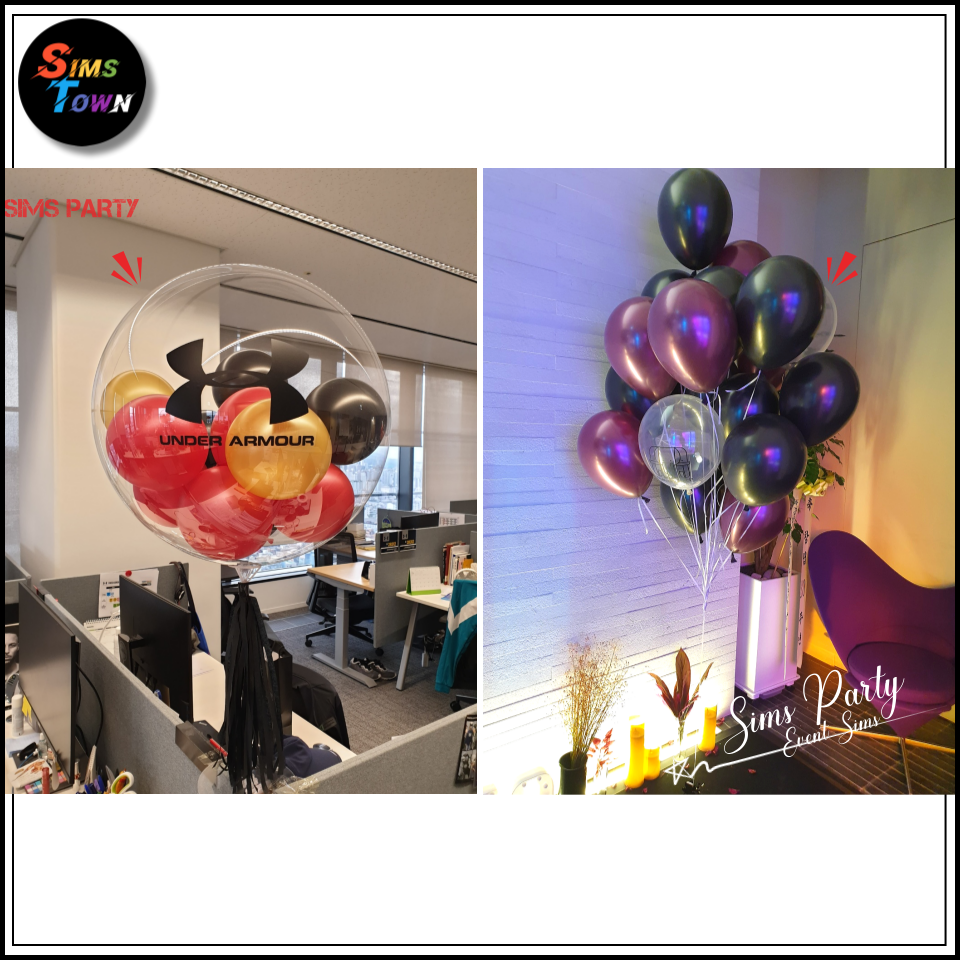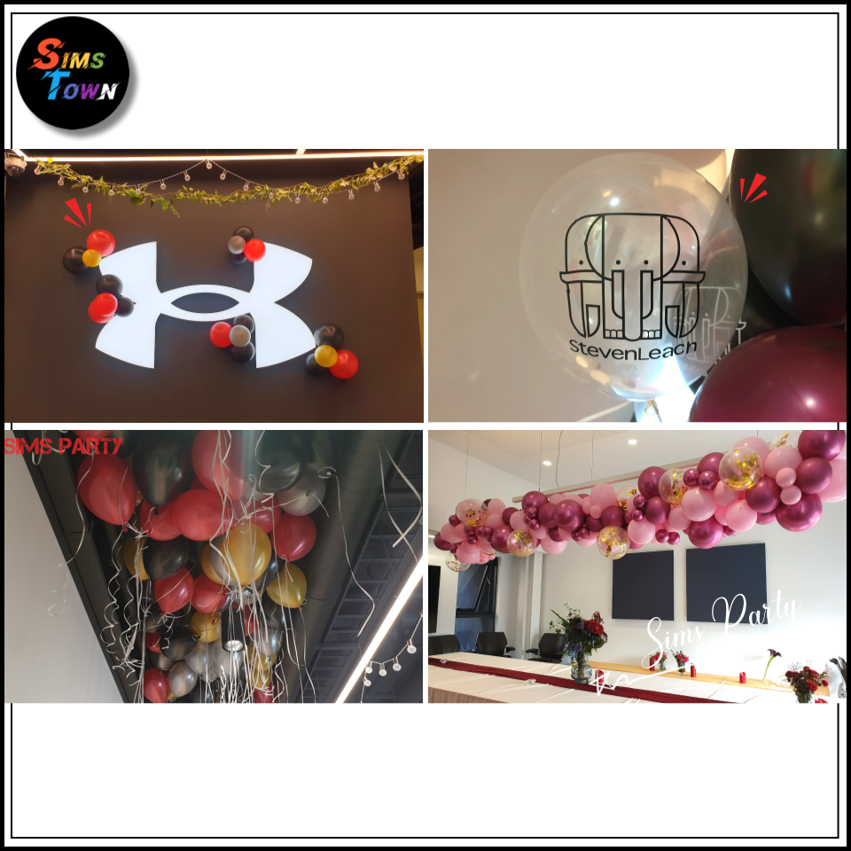 브랜드 로고를 새긴 것을 포함해, 해당 공간의 분위기에 어울리는 헬륨인쇄풍선장식들입니다 :)