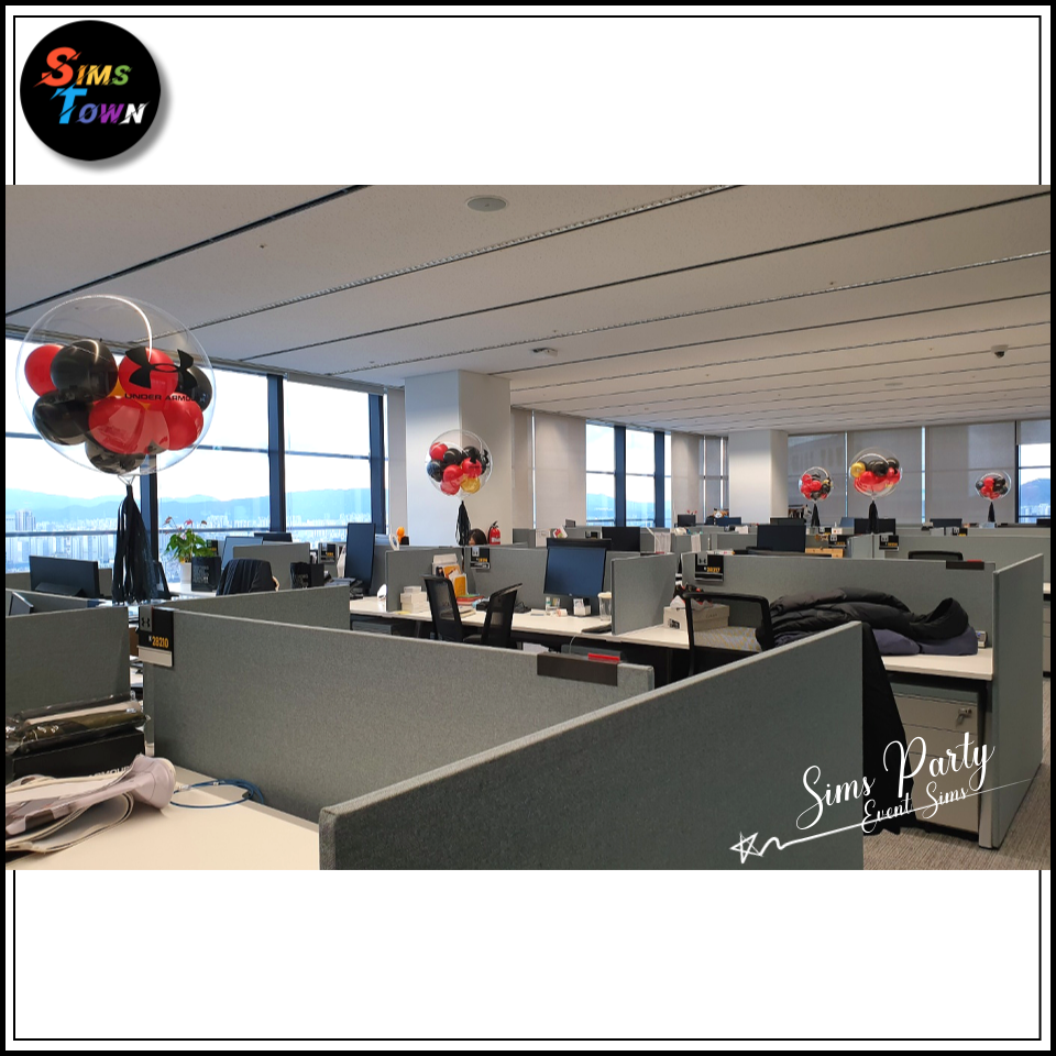 사무공간에 설치한 헬륨인쇄풍선입니다.