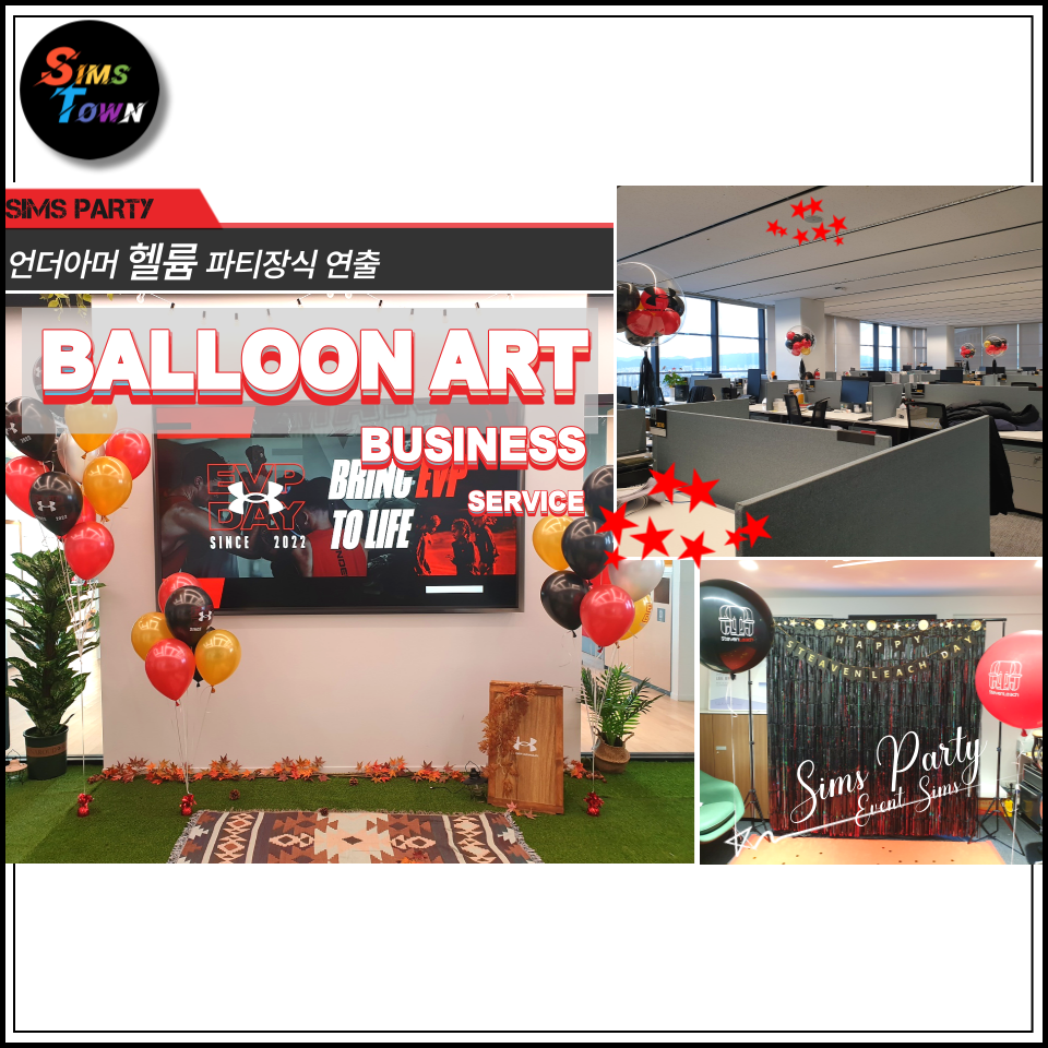 역시 해당 기업의 로고가 새겨진 헬륨인쇄풍선으로 장식을 진행했답니다.