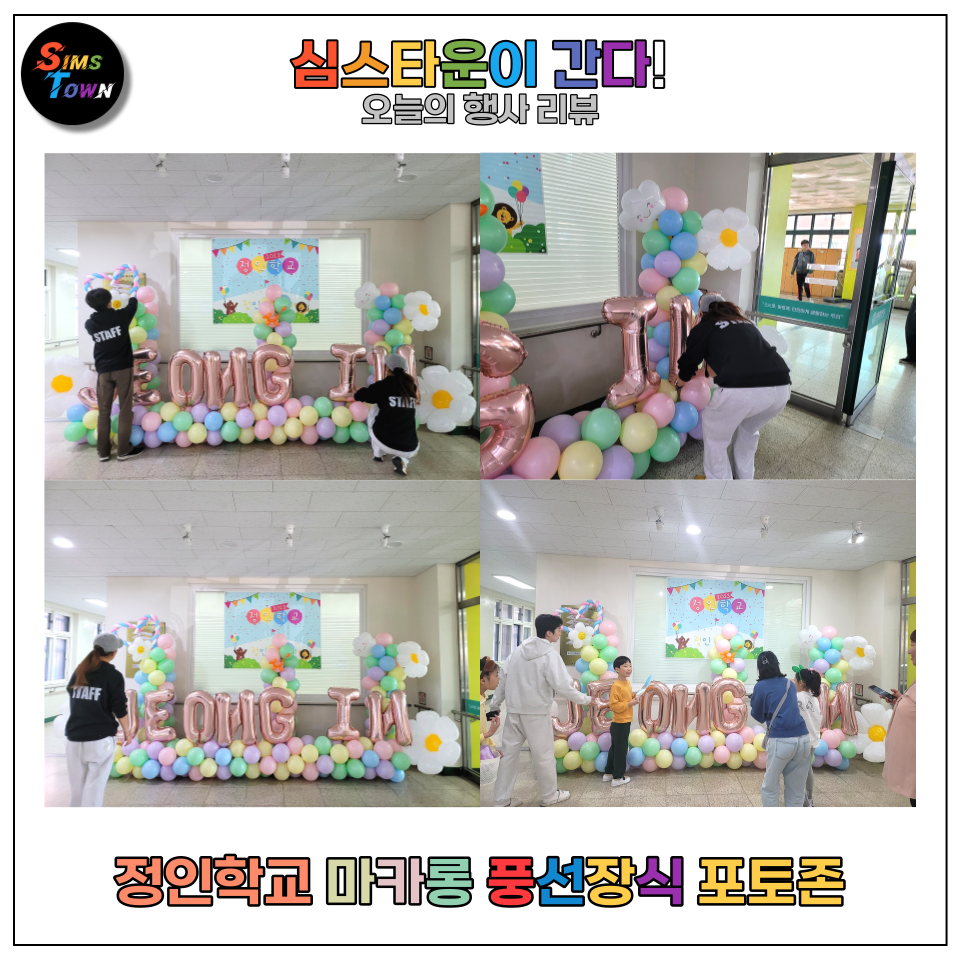 심스타운에서는 정인학교의 학생들과 교직원의 즐거운 하루를 위해서, 이벤트와 엔터, 파티 장식을 준비했습니다.