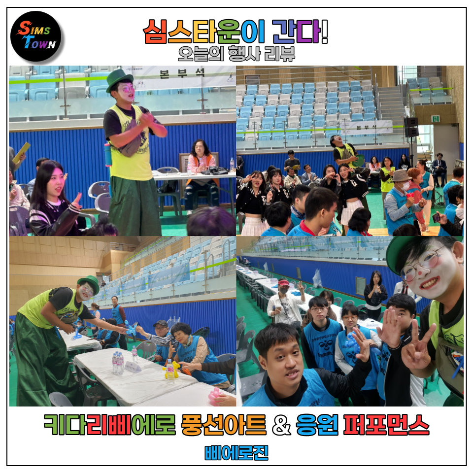 심스타운에서는 체육대회에 즐거움을 한 스푼 더하기 위해 키다리삐에로 두 명을 파견했는데요