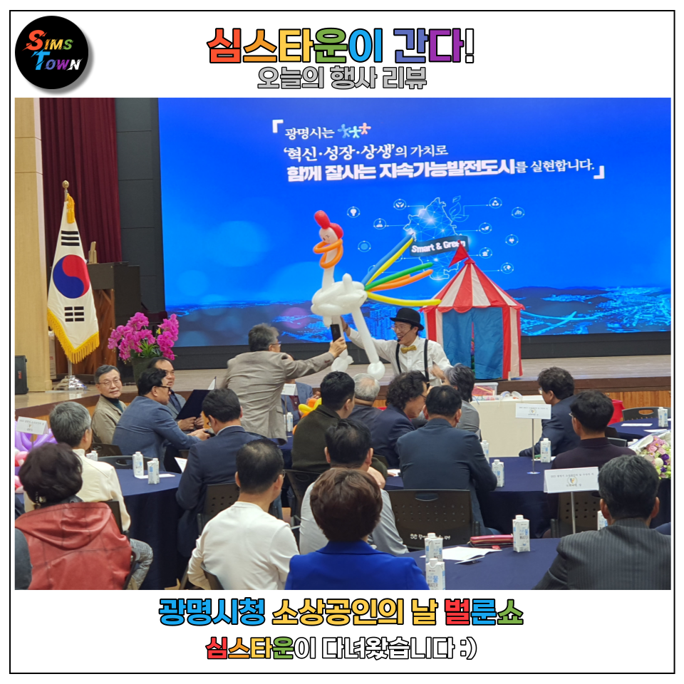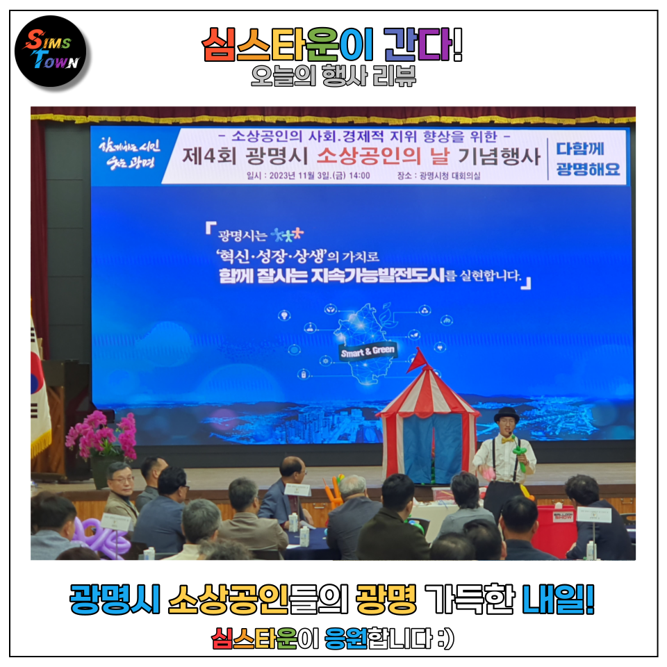 네. 이렇게 제4회 광명시 소상공인의 날 기념행사의 성대한 오프닝을 삐에로 썬이 장식해드렸습니다.