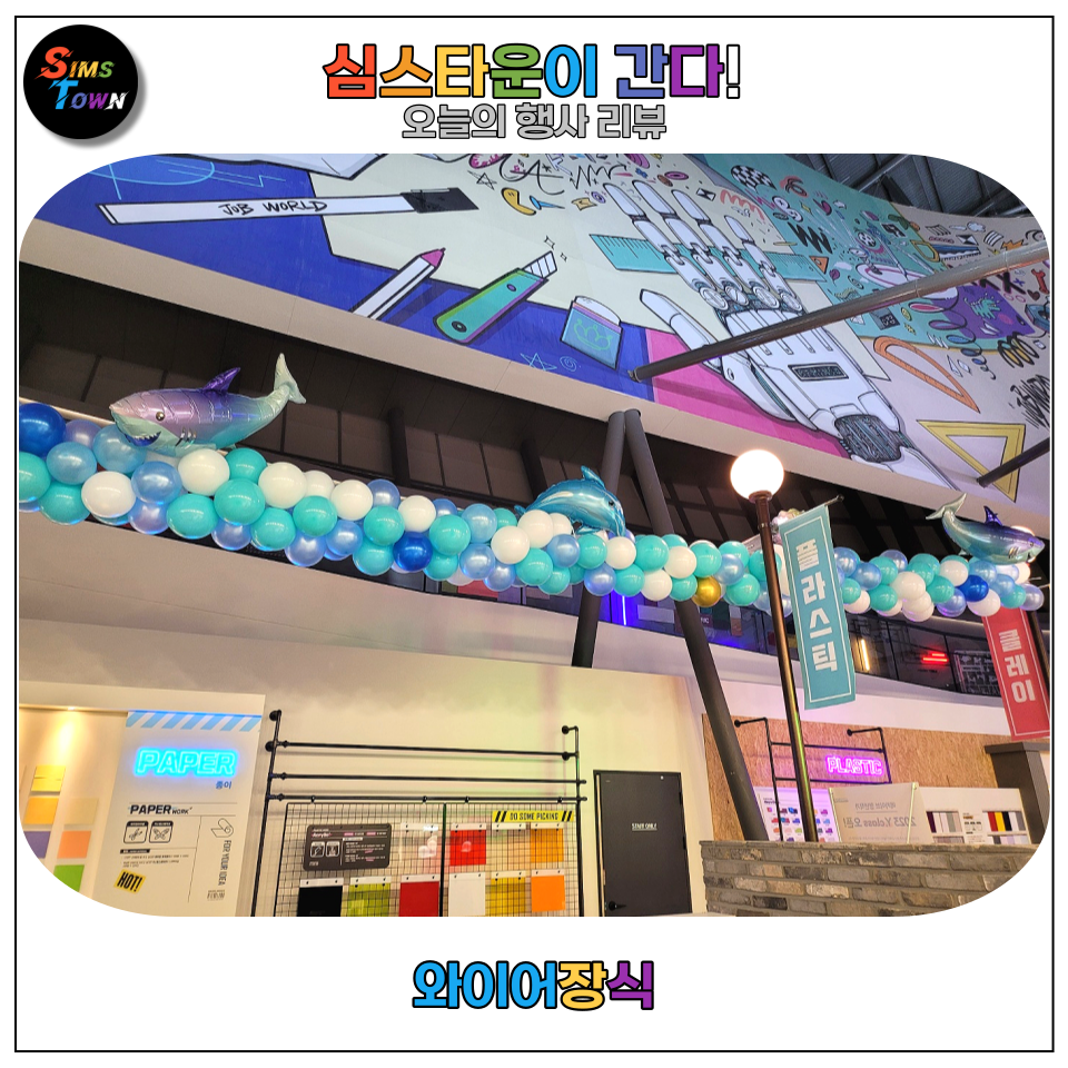 본 포스팅은 심스타운이 메카이브의 방문객들을 위해 제작한 풍선장식의 요소들을 하나씩 뜯어보는 리뷰입니다.