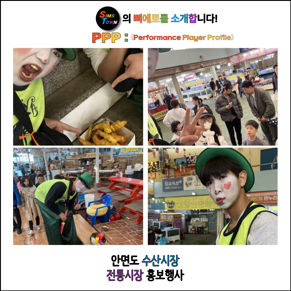 전통시장의 홍보와 즐거움을 뿌리기 위해서 삐에로민스가 안면도 수산시장에 다녀왔습니다.