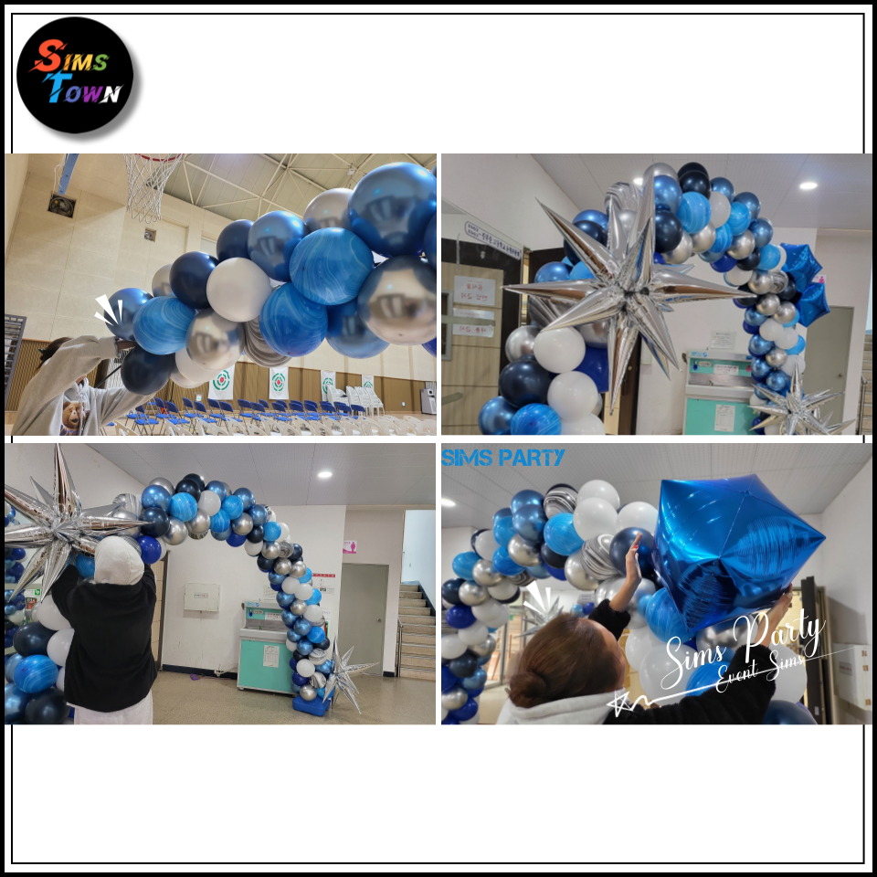 심스타운의 파티 디스플레이 부서 심스파티는 지난 연말, 강원도 평창군에 위치한 진부중에 방문해 블루 테마의 풍선장식을 연출해드렸는데요.