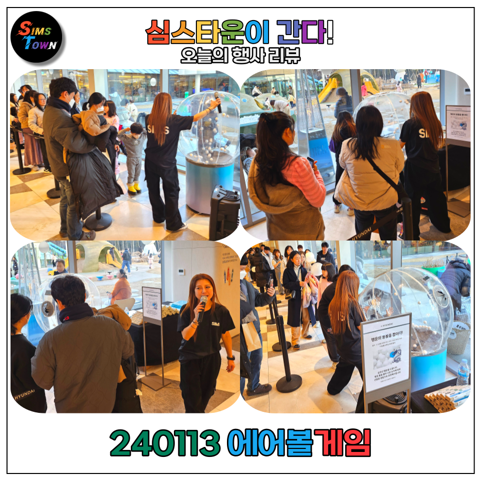| 에어볼게임 | 떠다니는 공을 잡아 추첨을 진행. 나레이터모델, 사회자 등이 담당. | 심스이벤트 |