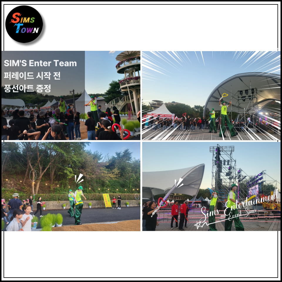 본격적인 퍼레이드가 시작되기 전, 심스엔터팀 삐에로들의 장기인 풍선아트 제작 이벤트가 진행되었습니다.