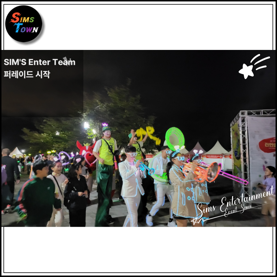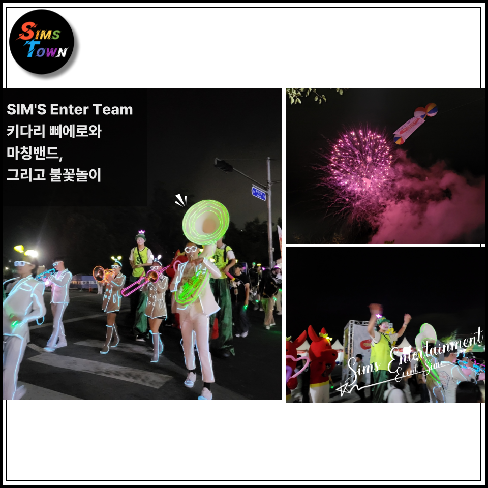 어두운 야간임에도 축제 마지막까지 고생해주신 관계자 여러분과 심스타운의 키다리삐에로 동료들, 마칭밴드 연주자 분들, 축제에 참여해주신 분 모두에게 감사를 표합니다. :)