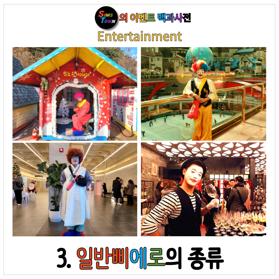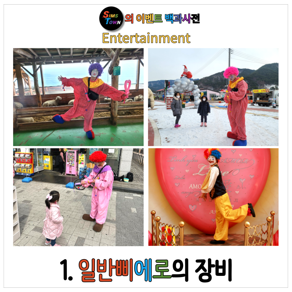 | 신상일반삐에로 | 심스타운이 새로 개발 중인 상품들이며, 현재 꿀벌삐에로, 꾸러기삐에로, 베니스삐에로, 말괄량이삐에로, 악동삐에로, 벌룬마임삐에로, 스마일삐에로 등이 출시되었습니다. |