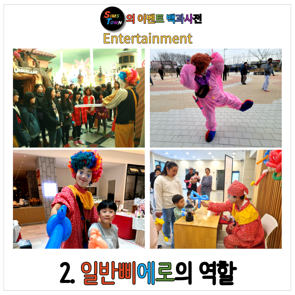 Sims Town 투어 가이드 이번 방문지인 은 이벤트를 집대성한 책과 같은 콘텐츠입니다. Event Promotion 오픈행사, 기업홍보, 테이프커팅 등 이벤트 프로모션과 풍선다트, 룰렛 등 체험행사 Entertainment 벌
