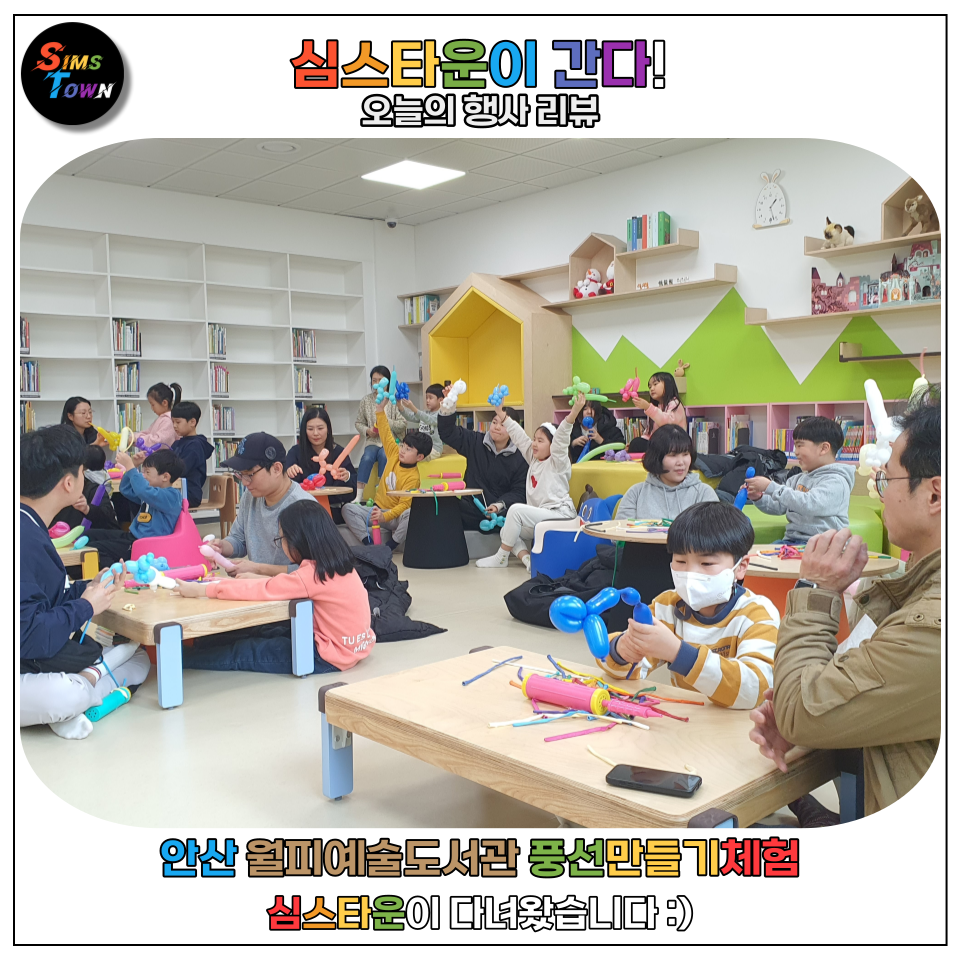 도서관 내부의 아기자기한 공간에서, 풍선만들기체험을 진행한 포트폴리오를 준비해봤습니다.