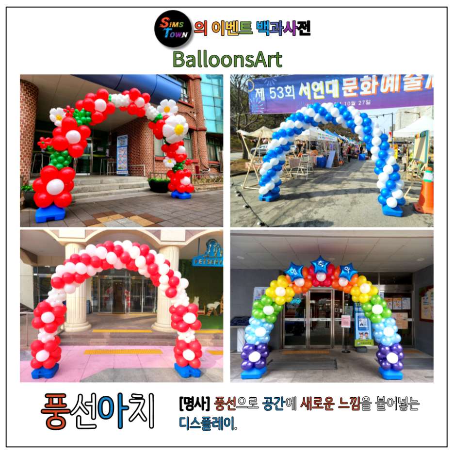 풍선아치 : [명사] 풍선으로 공간에 새로운 느낌을 불어넣는 디스플레이.