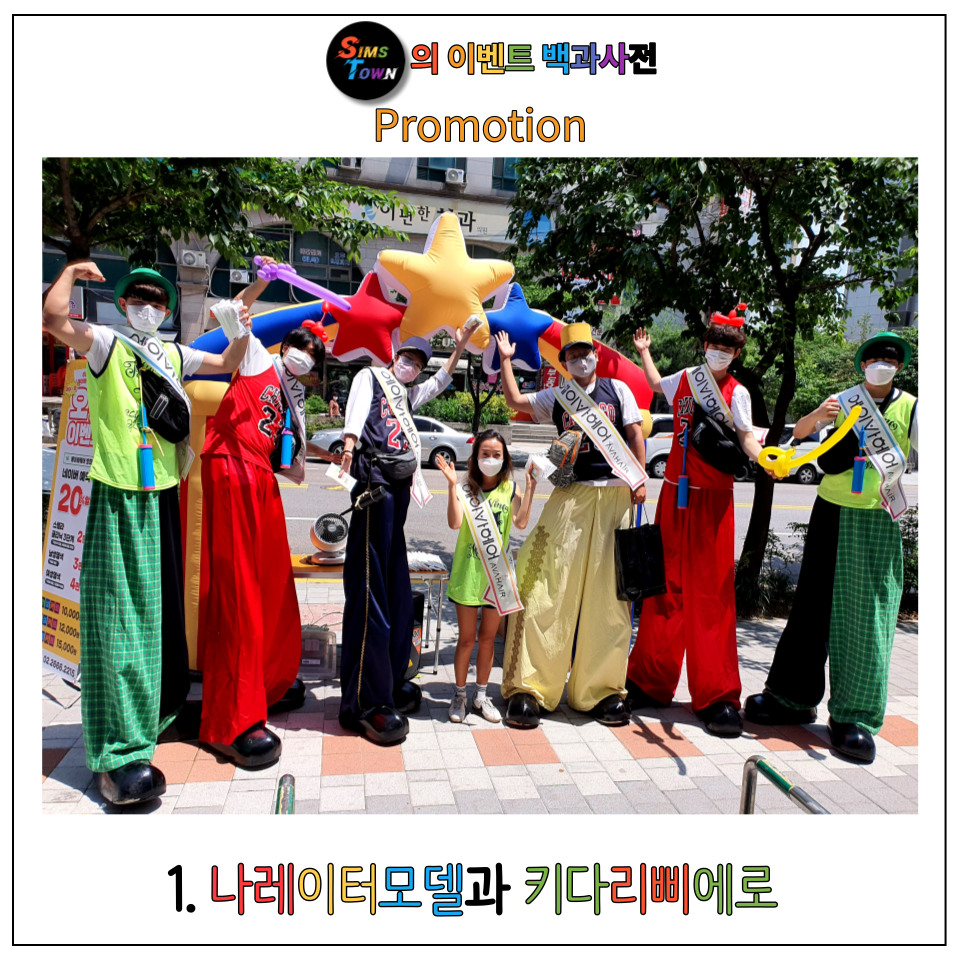 해당 글씨를 누르시면 <심스타운의 이벤트 백과사전> '나레이터모델'과 '키다리삐에로' 포스팅을 확인하실 수 있습니다.