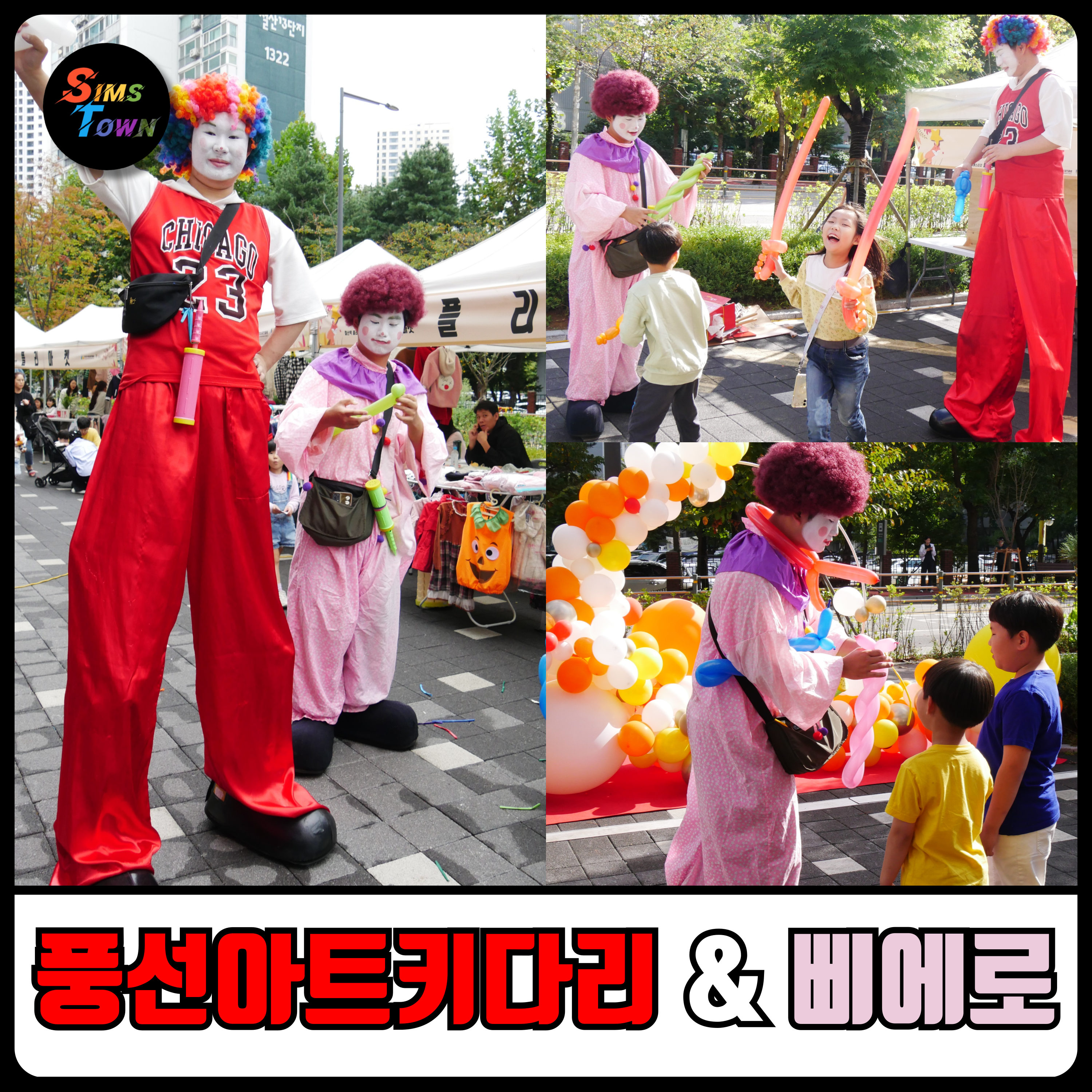 심스타운의 저력이 있는 아이템이죠. 풍선아트를 다루는 키다리삐에로와 일반삐에로 공연자입니다.