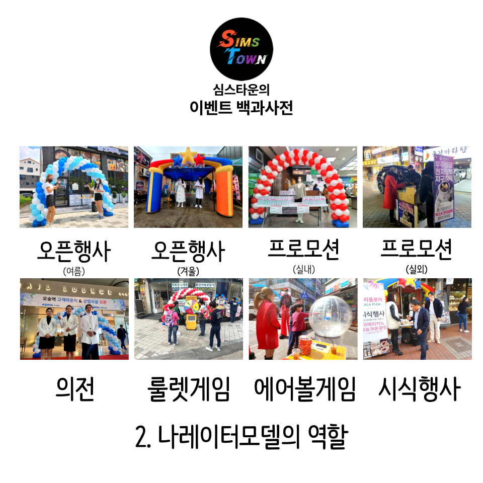 오픈식에서 심스타운의 짜임새있는 커팅식을 진행해보세요! Sims Town 투어 가이드 이번 방문지인 은 심스타운의 진심이 담긴 포트폴리오를 담았습니다. SimsEvent 오픈행사, 룰렛&에어볼, 홍보차량,