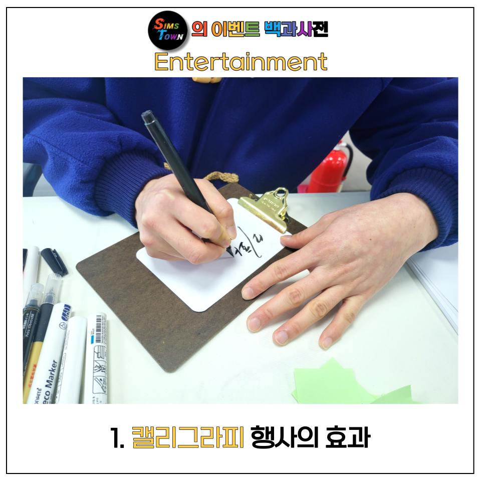 일필휘지의 멋진 글씨를 만들어드립니다 Sims Town 투어 가이드 이번 방문지인 은 이벤트를 집대성한 책과 같은 콘텐츠입니다. Event Promotion 오픈행사, 기업홍보, 테이프커팅 등 이벤트 프로모션과