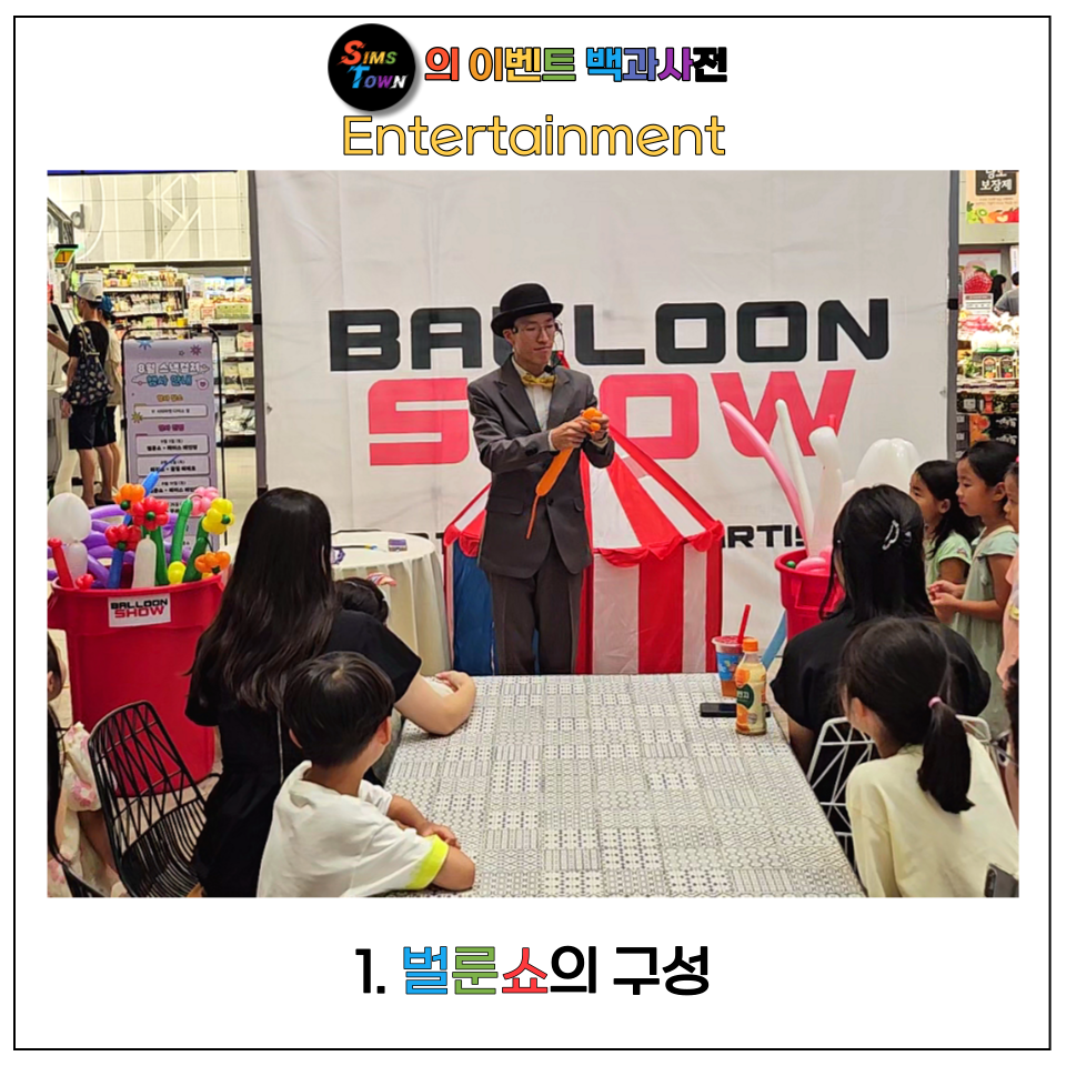 상기 사진에서 벌룬쇼의 구성 품목을 한눈에 볼 수 있는데요.