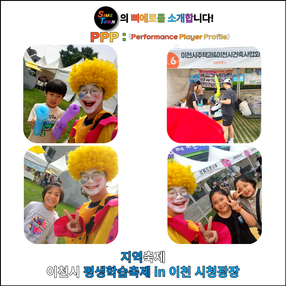 타운지기와 함께 삐에로행사를 나갈 때마다, 진심으로 행사를 즐기는 면모를 발산하여 귀감을 보여주기도 하지요.