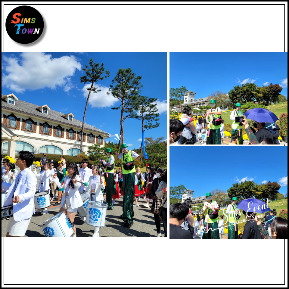 라이브 행진곡을 연주하는 관악대와 고적대 팀, 전열과 후열을 종횡무진하는 외발자전거 퍼포먼스, 멋진 댄스 실력을 보유한 아름다운 요정들과 키다리삐에로가 함께하니 장관을 연출할 수 있었답니다.