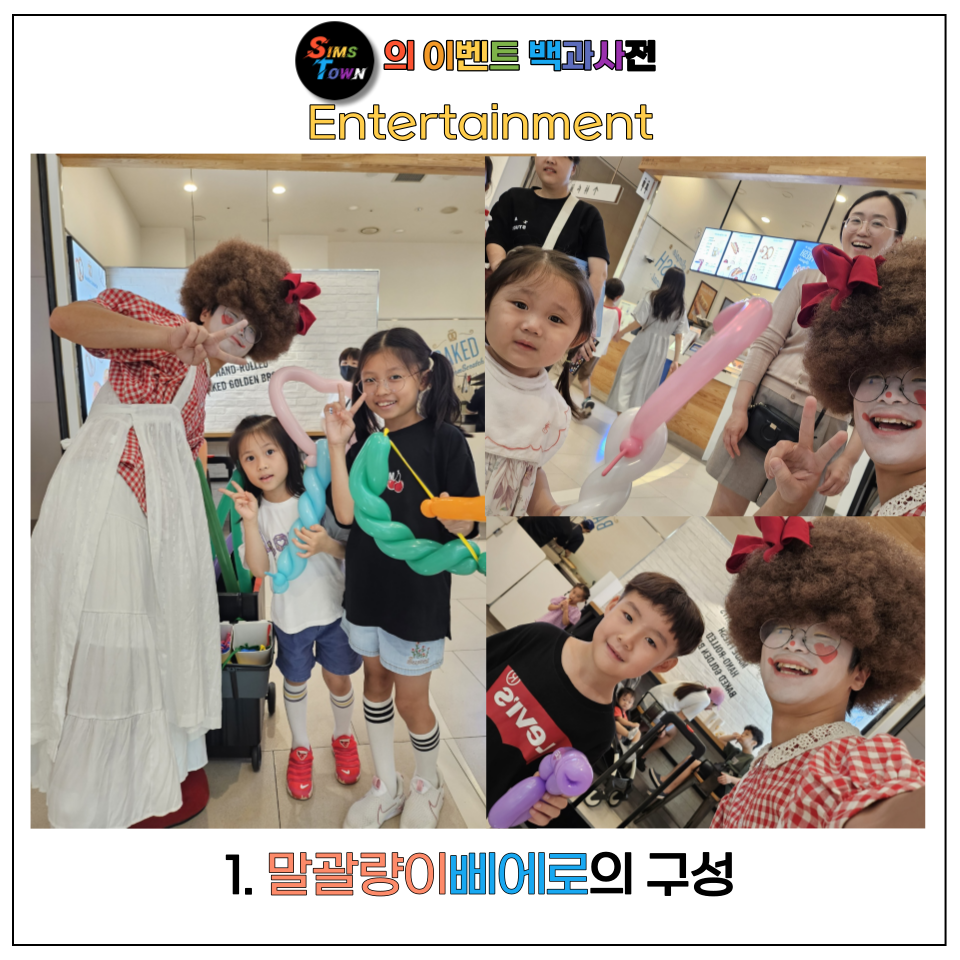 자유로움이 일반삐에로의 가장 큰 매력입니다 Sims Town 투어 가이드이번 방문지는 입니다.Event Promotion브랜드 마케팅을 위한 오프라인 행사와 체험부스를 대행합니다Entertainment눈과 귀를 현혹시