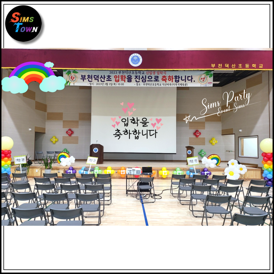 학교 입학식, 음악회, 학예회 등의 행사에서 풍선장식을 설치하고 싶으시다면, 심스타운을 찾아주세요 :)