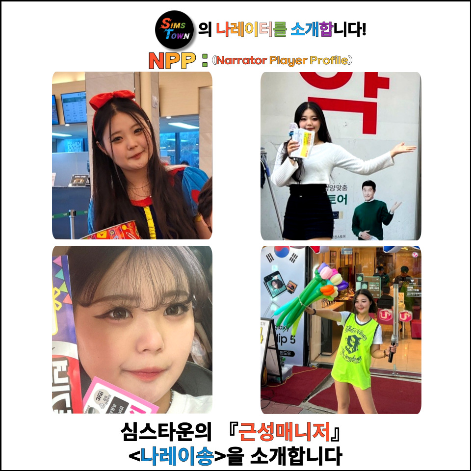 <나레이송>은 심스이벤트 나레이터팀의 매니저이자 영업, 인력, 행사 등 다양한 분야에서 활발히 활동 중인 플레이어란다.